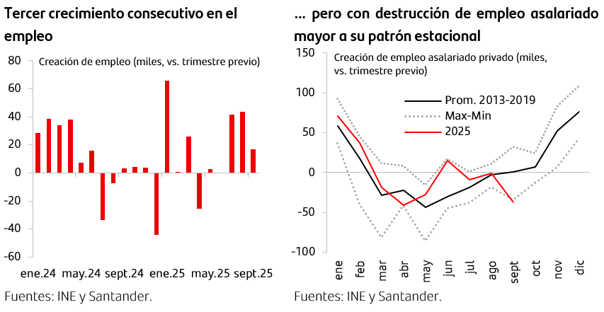 En nuestra visión, la mejora del empleo en el margen es una señal positiva, pero todavía frágil. A medida que la demanda interna, particularmente la construcción, recupere impulso durante el próximo año, debiéramos ver una mayor creación de empleo asalariado formal, lo que fortalecería el consumo privado y consolidaría la recuperación del mercado laboral.